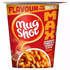 Mug Shot is the UK's favourite instant hot snack brand, made by Leeds-based Symington's - a company with over 190 years of food innovation experience. Each Mug Shot delivers tasty, satisfying pasta and noodles that are ready in just minutes with boiling water. The range includes classic pasta varieties like Creamy Cheese, Tomato & Herb, and Chicken & Sweetcorn, alongside noodle options in flavours such as Sweet & Sour and Curry. In late 2024, Mug Shot launched their new Max range featuring bold flavours aimed at younger consumers seeking convenient meals. Mug Shot Max pots offer four pasta flavours - Roast Chicken, Cheese & Broccoli, Mac & Cheese, and Sundried Tomato & Chorizo - plus Chicken & Mushroom noodles for maximum flavour in every pot. These larger portions are perfect for a quick lunch or satisfying snack. Whether you need a desk lunch, student budget meal, or quick snack at home, Mug Shot delivers convenience without compromising on taste. Available at all major UK supermarkets including Tesco, Sainsbury's, Asda, and convenience stores nationwide. Grocefully helps you compare Mug Shot prices across UK retailers to stock up on your favourite instant pasta and noodles at the best price.