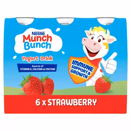 Munch Bunch is a beloved UK children's dairy brand owned by Lactalis Nestlé Chilled Dairy, giving kids moments of joyful nutrition since generations. The range includes yogurt, fromage frais, and the popular Squashums—squeezable fruit shapes made with natural ingredients and fruit purée that children love. Munch Bunch Fromage Frais is made with naturally sourced ingredients and fruit purée, fortified with Vitamin D. The yogurt range uses delicious whole milk with a smooth texture and no bits, with one pot containing 100ml of milk. Squashums come as fruit shapes and yogurt drinks, perfect for lunchboxes and on-the-go snacking. Munch Bunch Double Up provides 15% of children's required daily calcium and vitamin D per pot. The brand continuously innovates in the dynamic children's dairy sector, offering flavours including strawberry, vanilla, and fruit combinations. Munch Bunch products are available at all major UK supermarkets including Tesco, Morrisons, and Asda. Compare Munch Bunch prices at Grocefully to find the best deals on kids' dairy products.