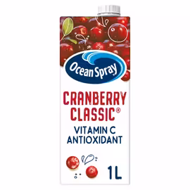 Ocean Spray is the world's leading cranberry brand, owned by a cooperative of over 700 cranberry farmers since 1930. Known for their distinctive ruby-red cranberry juice drinks, Ocean Spray delivers the unique crisp, clean taste of carefully selected and blended ripest cranberries. The UK range includes Cranberry Classic Juice Drink, No Added Sugar options, Chilled varieties with cranberry purée for extra intensity, and flavour blends like Cranberry & Raspberry. From ambient 1-litre bottles to chilled cartons and convenient 200ml multipacks, there's an Ocean Spray format for every occasion. As a farmer-owned cooperative, 100% of Ocean Spray's profits go back to their farmers, many of whom have farmed the same cranberry bogs for generations. This commitment to their growers ensures quality from harvest to bottle. Cranberry juice is known for its health benefits, and Ocean Spray makes it easy to enjoy with both classic and light options. Available at all major UK supermarkets including Tesco, Sainsbury's, Asda, and Morrisons. Grocefully helps you compare Ocean Spray prices across UK retailers to find the best deals on cranberry juice drinks.
