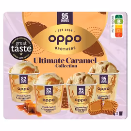 Oppo is a pioneering British ice cream brand that revolutionized the UK frozen dessert market with its guilt-free, low-calorie ice cream. Founded in 2014 by brothers Harry and Charlie Thuillier, Oppo was among the first to prove that healthy ice cream could taste indulgent while containing significantly fewer calories than traditional options. The brand's innovation lies in its formulation. Oppo ice creams typically contain 300-400 calories per pint compared to 1,000+ calories in regular ice cream, achieved without sacrificing creamy texture or satisfying flavour. Higher protein content and reduced sugar make it popular with fitness enthusiasts and those watching their calorie intake. Key ingredients include stevia for natural sweetness, virgin coconut oil for richness, and fresh British milk. The products are free from artificial sweeteners like aspartame and avoid the chalky texture associated with some diet desserts. The result is ice cream that feels like a treat rather than a compromise. The product range includes full-sized tubs in flavours like Salted Caramel, Mint Chocolate, and Vanilla, alongside convenient ice cream bars and sticks. The bars are particularly popular for portion control, offering around 100 calories per serving. Oppo is widely available in UK supermarkets including Tesco, Sainsbury's, Waitrose, and Ocado. The brand has won multiple Great Taste Awards and established itself as a leader in the 'better-for-you' frozen dessert category, competing directly with American import Halo Top.