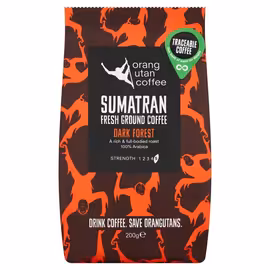 Orang Utan Coffee is a pioneering sustainable coffee brand from UCC Coffee UK & Ireland that supports conservation of the critically endangered Sumatran Orangutan with every pack sold. This 100% Arabica, single origin, single estate coffee became the UK's first blockchain-traced coffee in partnership with IBM's Thank My Farmer app. The brand makes a tangible difference to conservation: €0.50 from each kilogram of green beans goes directly to farmers, with a further €0.50 donated to the Sumatran Orangutan Conservation Programme. This dual impact supports both farming communities and the endangered species that share their forest habitat. The Orang Utan range includes Dark Forest (the flagship roast), Canopy Climb (light and smooth 100% single origin Arabica), coffee bags for convenience, and Nespresso-compatible capsules. The striking redesigned packaging features the distinctive orangutan imagery that makes the brand instantly recognisable on shelf. Grocefully helps UK shoppers compare Orang Utan Coffee prices at Waitrose, Ocado, and other retailers. Find the best deals on this ethical, blockchain-traced coffee that combines exceptional taste with meaningful conservation impact.