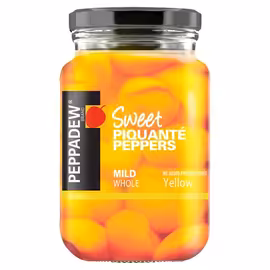 Peppadew is the iconic South African brand famous for its unique sweet piquanté peppers - bite-sized peppers with a layered sweet and tangy flavour complemented by varying levels of heat. Each pepper is carefully hand de-cored, making them perfect for stuffing with cream cheese, feta, or other fillings. Peppadew peppers have become a staple in UK kitchens for their distinctive flavour and versatility across salads, antipasti, pizzas, and as elegant party appetizers. Manufactured by Peppadew International in South Africa and imported to the UK by Euro Food Brands Ltd, they've earned a dedicated following among food lovers. The range is widely available at UK supermarkets including Tesco (with Clubcard prices often available at £1.75 vs £2.50 RRP), Sainsbury's, and Morrisons. Products come in Mild and Hot varieties in 260g and 400g jar sizes, plus Peppadrops for different serving options. Whether you're creating stuffed pepper appetizers, adding flavour to salads, or topping pizzas, Peppadew delivers unique sweet heat. Grocefully helps you compare Peppadew prices across UK supermarkets to find the best deals.