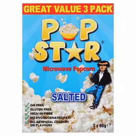 Pop Star is a UK microwave popcorn brand passionate about keeping customers happy with affordable, quality popcorn perfect for movie nights and home snacking. Their microwave popcorn range comes in three classic flavours—Sweet, Salt, and Butter—offering something for every taste preference. Quality and value go hand-in-hand at Pop Star. Their manufacturing site has been awarded the coveted BRC (British Retail Consortium) Grade A qualification, demonstrating commitment to food safety and quality standards whilst delivering great value products. Pop Star popcorn is designed with health-conscious consumers in mind. The range is high in fibre, gluten-free, GM-free, and contains no artificial colours, flavours, or hydrogenated fats. All varieties are suitable for vegetarians, making them an inclusive snacking choice for the whole family. The convenient 85g microwave bags offer the perfect portion for individual snacking or sharing. Simply pop in the microwave for a quick, easy treat—the ideal accompaniment to a cosy night in watching films. Pop Star delivers the cinema popcorn experience at home without the cinema prices. At Grocefully, compare prices on Pop Star microwave popcorn including Sweet and Salted varieties across UK supermarkets including Lidl and B&M. Enjoy affordable, quality popcorn with impressive health credentials.