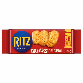 Ritz is an iconic American cracker brand that has been delighting snackers since 1934. Now part of the Mondelēz International portfolio, Ritz crackers are instantly recognisable by their distinctive round shape, scalloped edges, and rich buttery flavour that has made them a global favourite. The original Ritz cracker is celebrated for its light, flaky texture and subtle saltiness that pairs perfectly with a wide range of toppings. From cheese and dips to pâtés and smoked salmon, Ritz provides the ideal base for canapés and snacks. Their versatility has made them a staple at parties and gatherings worldwide. The Ritz range has expanded to include cheese-flavoured crackers, delivering the classic Ritz taste with an extra savoury punch. Mini cracker multipacks offer convenient portion-controlled snacking perfect for lunchboxes and on-the-go moments. The Ritz Breaks format provides ready-to-eat snacking solutions. What sets Ritz apart is their unique baking process that creates that signature buttery crunch without being overly crispy. The slightly sweet, slightly salty balance makes them enjoyable on their own or as the foundation for elaborate appetisers. Available at all major UK supermarkets including Ocado, Morrisons, and Asda, Ritz crackers offer premium snacking at accessible prices. Use Grocefully to compare Ritz prices and find the best deals on these classic crackers.
