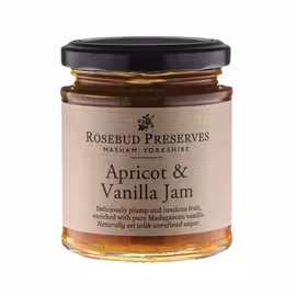 Rosebud Preserves is a beloved British artisan preserve maker founded by Elspeth Biltoft in January 1989. Working from two converted 19th-century barns at Rosebud Farm near Masham in North Yorkshire, with open views overlooking a pretty valley at the east end of Wensleydale, the company crafts approximately sixty different preserves using traditional methods. The range includes sumptuous jams thick with fruit, bold marmalades alive with the tang of citrus, deep and rich chutneys, vibrant relishes, translucent jewel-like jellies, and mustards. Signature products include the award-winning Seville Orange Marmalade, Gooseberry & Elderflower Jam, Lemon & Ginger Marmalade, and Apricot & Vanilla Jam. Rosebud sources ingredients locally and nationally: rhubarb from the famous Yorkshire Triangle, damsons from the Lyth Valley in Cumbria, Bramley apples from Kent, and fresh herbs from Yorkshire. Small-batch production using generous quantities of ingredients and unrefined cane sugar ensures bright freshness that emulates the best of home cooking. The company has also collaborated with Masons of Yorkshire for a Satsuma and Gin Marmalade. Grocefully helps you compare Rosebud Preserves prices across UK retailers including Ocado and Liberty London.