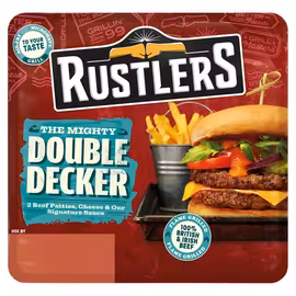 Rustlers is the UK's number one microwavable snack brand, produced by Irish-based Kepak since 1999. Generating annual sales of over £108 million, Rustlers has become synonymous with quick, convenient flame-grilled burgers and hot sandwiches ready in just 90 seconds. Made with 100% British and Irish beef, Rustlers offers a range of burgers including The Iconic Quarter Pounder, Double Decker Burger, and The Juicy BBQ Rib. The range also includes chicken sandwiches, subs, hotdogs, and meat-free options like The Meatless Maverick for plant-based fans. In 2025, Rustlers unveiled a total brand refresh with new packaging designed to improve on-shelf appeal and clearer differentiation between product categories. New cooking method stickers highlight microwave and air fryer instructions for today's convenience-focused shoppers. Available at every UK supermarket and convenience store including Tesco, Sainsbury's, Asda, Morrisons, and petrol stations nationwide, Rustlers dominates the food-to-go market for hungry shoppers wanting a hot meal fast. Grocefully helps you compare Rustlers prices across UK retailers to find the best deals on microwaveable burgers and snacks.