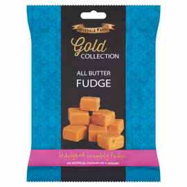 Ryedale Farm Gold Collection is a UK confectionery brand specialising in premium traditional fudge. Operated by RAM (York) Ltd. and based in Pocklington, York, this quintessentially British brand takes its name from the picturesque Ryedale district of North Yorkshire, an area renowned for its agricultural heritage and artisan food production. The Gold Collection fudge is crafted using time-honoured methods that have remained unchanged for over a century. Made in open pans using the traditional farmhouse technique, each batch of fudge develops its distinctive crumbly texture and rich, creamy flavour. The recipes use only the finest ingredients, with the All Butter Fudge containing a generous 18% butter, combined with sugar, golden syrup, and whole milk powder. What sets Ryedale Farm apart is their commitment to quality without compromise. All Gold Collection products are made without artificial colours or flavours, making them suitable for those seeking more natural confectionery options. The range is vegetarian-friendly and carries Halal certification, ensuring broad accessibility. The product lineup includes classic All Butter Fudge, indulgent Salted Caramel Fudge, Vanilla Dairy Fudge, and Chocolate Covered Fudge. UK shoppers can find Ryedale Farm Gold Collection fudge at major supermarkets including Iceland and Lidl, typically priced around £1.25-£1.50 per bag. The affordable pricing combined with premium quality makes these fudge products perfect for everyday treats, gifts, or sharing. The distinctive gold packaging reflects the brand's premium positioning whilst remaining accessible to everyday shoppers.