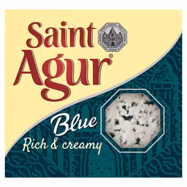 Saint Agur is a premium French blue cheese crafted in the Auvergne region, known for its distinctively creamy texture and approachable blue cheese flavour. Created in 1988 by Savencia Fromage and Dairy, Saint Agur has become one of the most popular blue cheeses in the UK, offering a gateway into the world of blue cheese for those who find traditional varieties too intense. Made from pasteurised cow milk with 60% fat content, Saint Agur has an exceptionally smooth, buttery texture that sets it apart from crumblier blues like Stilton or Roquefort. The flavour is rich and tangy with distinctive blue veining, but without the sharp bite that can deter blue cheese newcomers. The classic Saint Agur wedge is perfect for cheese boards, crumbling over salads, or melting into sauces. Creme de Saint Agur offers a spreadable version ideal for canapes, sandwiches, and dips. The Blue Whipped Cheese takes convenience further with a light, airy texture perfect for spreading. Saint Agur pairs beautifully with sweet accompaniments like honey, figs, and pears, as well as robust red wines. Its versatility in cooking makes it popular for pasta sauces, stuffed chicken, and gourmet burgers. At Grocefully, we help you compare Saint Agur prices across UK supermarkets, making this premium French cheese accessible for everyday indulgence.