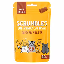 Scrumbles is a British pet food brand founded in 2018 by husband and wife team Aneisha Soobroyen and Jack Walker, inspired by their own pets' sensitive tummies. After their cat Boo suffered digestive issues, Aneisha and Jack quit their corporate jobs and spent 18 months developing recipes in their Croydon kitchen before launching Scrumbles. The brand focuses on gut health, featuring natural prebiotics (like chicory and slippery elm), probiotics (Enterococcus Faecium with over 1 billion live bacteria per kilo), and postbiotics across their range. All recipes are hypoallergenic, avoiding soy, gluten, dairy, egg, and red meat. Scrumbles uses easy-to-digest proteins—free-run poultry and fish from human food supply chains—with up to 77% quality meat or fish per recipe. Scrumbles gained national attention on Dragon's Den in August 2019, where Aneisha and Jack famously turned down an offer from Deborah Meaden. Since then, the company has grown from packing orders in their kitchen to generating over £10 million in annual sales. In March 2023, Scrumbles secured a £6 million investment to fund further expansion. The product range includes probiotic-packed dry food for dogs and cats, grain-free wet food with 65% single-source meat, guilt-free treats, dental chews, and specialist puppy and kitten food. All Scrumbles products are manufactured in the UK. Key retailers include Tesco, Sainsbury's, Waitrose, Asda, Pets at Home, and Amazon. Compare Scrumbles dog food and cat food prices across UK supermarkets with Grocefully.