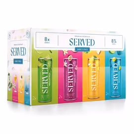 Served is a British brand revolutionising the ready-to-drink (RTD) cocktail market with premium canned cocktails that deliver bar-quality taste at home. Founded with a mission to make exceptional cocktails accessible without the need for expensive ingredients or bartender skills, Served has quickly become a favourite for entertaining and convenient indulgence. The brand's portfolio includes classic cocktails reimagined for the can format. Their Espresso Martini delivers rich coffee flavour with a smooth vodka kick, perfect for post-dinner drinks or a sophisticated pick-me-up. The Pina Colada offers tropical escapism with coconut and pineapple notes at 8% ABV. For variety, their Cocktail Variety Pack lets you sample multiple flavours in one purchase. Served also offers a Hard Seltzer Variety Pack for those seeking lower-calorie, refreshing alcoholic options. Their seltzers combine sparkling water with natural flavours and a hint of alcohol, catering to health-conscious consumers who still want to enjoy a drink. At Grocefully, we help you compare Served cocktail and hard seltzer prices across UK supermarkets including Ocado and Iceland, ensuring you find the best deals for your next party or relaxing evening at home.