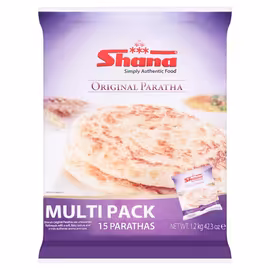 Shana is a leading brand of authentic frozen Indian foods, renowned for their superior quality parathas, samosas, chapattis and traditional flatbreads. The brand brings the convenience of ready-to-cook Indian staples to busy households while maintaining the authentic flavours and textures of homemade. Shana's signature product is their Original Paratha - unleavened flatbreads with a soft, flaky texture and truly authentic taste originating from the northern Indian subcontinent. The parathas feature a crisp outer flakiness with a soft inner texture, designed to complement any curry or dhal. The paratha range includes Plain, Wholemeal, Lacha (layered), Chilli, Garlic, Onion and Chilli Garlic varieties. Stuffed parathas are available in flavours like Gobi Aloo (cauliflower and potato), Mixed Veg and Aloo (potato), offering a complete meal option straight from the freezer. Shana's samosas include the popular Punjabi Samosa and Mixed Veg Samosa, perfect as appetisers, snacks or party food. The range also includes Wholemeal Chapattis and other traditional Indian breads that make wholesome accompaniments to home-cooked curries. Quality is central to Shana's brand promise - only the finest and purest ingredients are used, with no artificial colourings, flavourings or preservatives. The products deliver the real textures and flavours of authentic Indian cooking without the time-consuming preparation. Shana products are widely available at Tesco, Sainsbury's, Asda and Asian grocery stores across the UK including Lakshmi Stores and Bombay Basket. Grocefully helps you compare prices to find the best deals on frozen Indian foods.