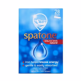 Spatone is the UK's No.1 Natural Iron Brand, offering a unique iron supplement sourced from naturally occurring iron-rich water collected in the heart of Snowdonia National Park, Wales. Made in the UK by Spatone Limited (part of Nelson's), this distinctive supplement contains just one ingredient: 100% natural iron-rich water. What sets Spatone apart is its exceptional absorption rate. Scientifically shown to be highly absorbable, Spatone delivers your daily iron needs with fewer side effects than conventional iron supplements. Because more iron is absorbed, less unabsorbed iron enters the intestinal tract, reducing common complaints like constipation and stomach irritation often associated with iron tablets. The range includes Original Daily Iron Shots and versions enhanced with Vitamin C and apple concentrate for improved absorption and pleasant taste. Available in convenient 14-day and 28-day sachet packs, each single-serve sachet makes supplementation simple and mess-free. Spatone is suitable for vegetarians, vegans, and the whole family aged 2+, including pregnant and breastfeeding women (who should take two sachets daily). For optimal absorption, take on an empty stomach, either straight from the sachet or mixed with vitamin C-rich juice, allowing 30-45 minutes before eating. Find Spatone at UK supermarkets including Ocado, Sainsbury's, Tesco, and Boots. Compare prices on Grocefully to ensure you're getting the best value on this premium natural iron supplement.