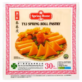 Spring Home is the flagship brand of Tee Yih Jia (TYJ) Food Manufacturing, a Singapore-based company renowned for producing the world's most popular spring roll pastry. From their manufacturing facility on Senoko Road, Singapore, TYJ supplies frozen Asian specialities to markets across the globe. The TYJ Spring Roll Pastry has become an essential ingredient in kitchens worldwide, offering thin, pliable sheets that crisp up beautifully when fried. Available in various sizes including 8.5" (40 sheets) and 7.5" (50 sheets), the pastry is made from wheat flour, water, and coconut oil with minimal additives. Beyond spring rolls, the Spring Home range includes Roti Paratha (Indian-style flatbread), dim sum, and other Asian frozen specialities. All products are Halal certified, making them suitable for Muslim consumers, and the spring roll pastry is vegetarian-friendly. Found in Tesco and Asian supermarkets across the UK, Spring Home brings authentic Asian cooking convenience to British kitchens. The frozen pastry keeps well at -18°C and should be used immediately once defrosted for best results.