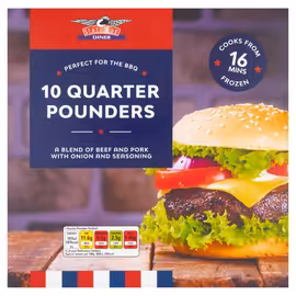 Stateside Diner is a frozen food brand bringing authentic American diner-style food to UK freezers. Their range features classic American fare perfect for quick family meals, BBQs, and casual entertaining. The Stateside Diner range includes American Patties in bulk packs of 20, Quarter Pounders for classic burger nights, and Ham and Cheese Stacks for a twist on traditional burgers. All products are frozen for convenience and extended shelf life. Stateside Diner products are designed to deliver that American diner experience at home, with generous portions and family-sized packs that offer good value for money. Grocefully helps you compare Stateside Diner prices across UK supermarkets including Iceland. Find the best deals on American-style frozen food for family meals and BBQ season.
