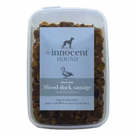 The Innocent Hound is a premium British dog treat brand dedicated to creating healthy, natural treats using quality British-sourced meats. Founded on the principle that dogs deserve treats as good as human food, the brand avoids artificial additives, preservatives, and fillers that dominate mass-market pet treats. The sausage range showcases gourmet meat and fruit combinations. Venison Sausages with Chopped Apple pair wild game meat with natural sweetness, while Sliced Venison Sausage offers convenient pre-cut pieces perfect for training or rewards. Duck Sausage with Cranberry brings festive flavour combinations to everyday treating. For puppies, the Training Treats in Lamb with Yellow Split Pea are specifically sized and formulated for young dogs learning commands. The soft texture and high-value lamb flavour make them ideal for positive reinforcement training during crucial development periods. The Innocent Hound uses novel proteins like venison and duck, which can benefit dogs with sensitivities to common proteins like chicken or beef. All recipes feature simple, recognisable ingredients that pet owners can feel confident feeding their dogs. The brand elegant packaging and quality positioning has made it popular among discerning dog owners who view their pets as family members deserving premium nutrition. At Grocefully, we help you compare The Innocent Hound prices across UK supermarkets, making premium dog treats more accessible.
