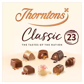 Thorntons is a beloved British chocolate manufacturer with over a century of heritage, established in 1911 by William Joseph Thornton and his father Joseph in Sheffield, Yorkshire. From humble beginnings as a family confectioner, Thorntons grew to become one of Britain's most recognised chocolate brands, synonymous with quality gifting and indulgent treats. In 2015, Thorntons became part of the Ferrero Group in a £112 million acquisition, joining the Italian confectionery giant's portfolio alongside Ferrero Rocher, Nutella, and Kinder. Under Ferrero's ownership, the brand has been reimagined with remastered classics and new creations while maintaining its British heritage and quality standards. While Thorntons closed its owned retail stores, the brand continues to thrive through franchise stores, supermarket distribution, and e-commerce. Products are still manufactured at factories in Alfreton, Derbyshire, and Greenford, west London, ensuring authentic British production for domestic and international markets. The Thorntons range includes the iconic Continental chocolate assortment, beloved toffee, chocolate bars, seasonal advent calendars, and premium gift boxes. The brand remains a firm favourite for celebrations, with Christmas, Easter, Valentine's Day, and Mother's Day driving strong seasonal demand across UK supermarkets. Compare Thorntons prices across UK supermarkets on Grocefully to find the best deals on Britain's favourite chocolate gifting brand.