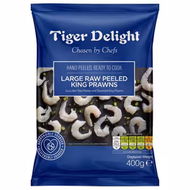 Tiger Delight is a premium king prawn brand offering a variety of high-quality prawns for home cooking. From raw to cooked, plain to marinated, their range provides versatile seafood options for various recipes and occasions. Product range includes raw peeled king prawns in large and extra large sizes, cooked whole and peeled king prawns, marinated varieties (sweet chilli, garlic and herb), crispy tempura king prawns, crunchy coated prawns, and easy peel options. Tiger Delight prawns are sized from large to jumbo, catering to different recipe needs and presentation requirements. Popular for stir-fries, curries, pasta dishes, salads, and as impressive party food centrepieces.