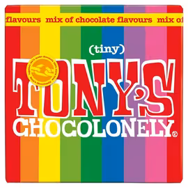 Tony's Chocolonely is a purpose-driven Dutch chocolate brand on a mission to make chocolate 100% slave-free. Founded in 2005 after journalist Teun van der Keuken discovered exploitation on West African cocoa farms, Tony's has become a symbol of ethical chocolate with its iconic colourful wrappers and unequally divided bars. Every Tony's Chocolonely bar is crafted using traceable cocoa beans under their 5 Sourcing Principles, ensuring farmers receive fair prices. The distinctive unequally divided chocolate segments serve as a reminder that the chocolate industry itself is unequally divided, with big companies making profits whilst farmers struggle. The UK range includes Milk Chocolate, Dark Chocolate, Milk Caramel Sea Salt, Dark Almond Sea Salt, White Chocolate Raspberry Popping Candy, and seasonal favourites. Tony's also offers limited editions and the popular advent calendar filled with Belgian chocolate made from ethically sourced cocoa. Tony's Open Chain initiative invites other brands to source ethical cocoa, with partners like Pip & Nut's chocolate spread. Grocefully helps you compare Tony's Chocolonely prices across Tesco, Sainsbury's, Waitrose, Morrisons, and other UK retailers.