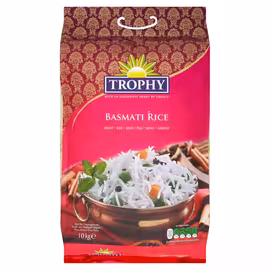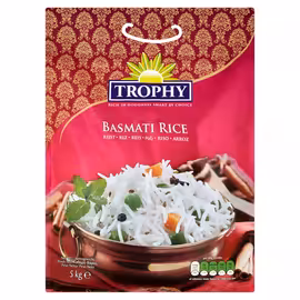 Trophy is a premium rice brand renowned for delivering superior taste and texture in every grain. Manufactured by Indo European Foods Ltd in the UK, Trophy has built a strong reputation among British consumers seeking authentic, high-quality basmati rice. Trophy Basmati Rice is sourced from the foothills of the Himalayas and aged for a minimum of 12 months to enhance its natural qualities. This careful ageing process brings out the best characteristics of each grain, resulting in rice that cooks to perfection every time. With an average grain length of 7.30mm, Trophy Basmati produces impressively long, fluffy, non-sticky grains with a distinctive aromatic fragrance. The delicate flavour and perfect texture make it ideal for biryanis, pilaf, and as an accompaniment to curries and other dishes. Grocefully offers Trophy Basmati Rice in various sizes including 10kg and 20kg packs across UK supermarkets like Tesco and Sainsbury's. Whether you're cooking for a large family or want bulk value, comparing prices helps you enjoy this premium rice for less.