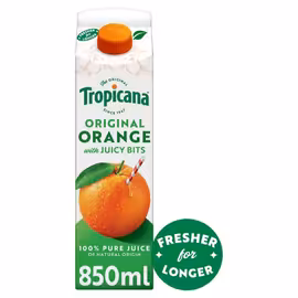 Tropicana is the UK's number one orange juice brand, known for delivering 100% pure squeezed fruit juice since 1947. Founded by Anthony T. Rossi in Florida, the company revolutionised the juice industry by developing flash pasteurisation in 1954—a process that preserves fresh taste without compromising quality. The brand's UK portfolio centres on its flagship Pure Premium range, available in both Smooth and Original with Bits varieties. Every glass of Tropicana contains hand-picked oranges squeezed within 24 hours, delivering no added sugar—just 100% perfectly pressed fruit juice. A 150ml serving provides one of your five a day and 38% of your recommended daily Vitamin C intake. In 2024, Tropicana launched its Rise & Shine juice drinks in Tesco, offering Smooth Orange and Pressed Apple flavours with 30% less sugar than standard juices. The brand also offers long-life ambient options alongside its popular chilled range, allowing consumers to stock their cupboards without refrigeration until opened. Following PepsiCo's ownership from 1998 to 2021, Tropicana is now part of Tropicana Brands Group—a joint venture between PAI Partners (61%) and PepsiCo (39%) established in 2022. The group also owns Naked, Copella, KeVita and other juice brands. Compare Tropicana prices across Tesco, Sainsbury's, Morrisons, Asda and more UK supermarkets to find the best value on your favourite breakfast juice.