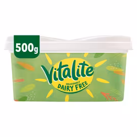 Vitalite is a pioneering dairy-free spread brand that has been a staple in UK kitchens since 1983. As one of the first mainstream dairy-free alternatives, Vitalite has been helping those with dietary requirements enjoy great-tasting spread for over four decades, going fully dairy-free in 2003. Approved by the Vegan Society, Vitalite is completely dairy-free, gluten-free, lactose-free, and soya-free - making it suitable for a wide range of dietary needs and allergies. The spread contains 75% less saturated fat than butter while being a great source of Vitamin E and Omega 3 & 6 for a more balanced diet. Made with vegetable oils including sunflower and rapeseed, Vitalite uses 100% sustainable palm oil, demonstrating the brand's commitment to environmental responsibility. The spread is versatile enough for all kitchen uses - whether spreading on toast and crumpets, beating into mash, cooking, baking, or even freezing. Following global sunflower oil shortages due to the Ukraine conflict, Vitalite adjusted their recipe with rapeseed alternatives while maintaining the same great taste and quality that customers know and love. Grocefully helps you compare Vitalite prices across major UK supermarkets including Tesco, Sainsbury's, Asda, and Ocado, ensuring you get the best value on this essential dairy-free kitchen staple.