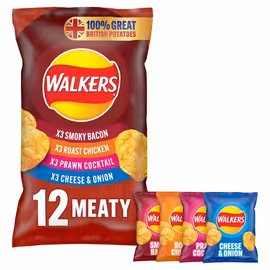 Walkers holds the distinguished position as Britain's largest and most popular crisp manufacturer, commanding over 25% of the UK potato crisp market and producing an astonishing 11 million bags daily at its Leicester factory, the largest crisp production plant in the world. Founded in 1948 by Henry Walker, a butcher who turned to frying potatoes when post-war rationing made meat scarce, Walkers has grown from a local Leicester enterprise into a national institution synonymous with British snacking. The company's origins trace back to Henry Walker, a successful butcher from Mansfield who relocated to Leicester in the 1880s. When meat became difficult to source after World War II, Walker began frying potato slices in a fish fryer in 1948, selling his first crisps sprinkled with salt for threepence a bag. The business changed hands several times before PepsiCo acquired Walkers in 1989 for approximately £900 million, making PepsiCo Europe's largest snack producer. Today, Walkers operates as PepsiCo's snack company in the United Kingdom and Ireland. The Walkers product range centres on its classic crisps in beloved British flavours. Ready Salted has been available since the 1948 founding. Cheese and Onion, inspired by the Ploughman's lunch and now the brand's most popular flavour, was introduced in 1954 as one of the first flavoured crisps. Salt and Vinegar, inspired by fish and chips, followed in 1967. The Classic Variety multipack includes these favourites plus Prawn Cocktail. Beyond traditional crisps, Walkers produces Quavers, Sensations, Wotsits, Monster Munch, and Doritos. The Baked range offers 50% less fat, while the 2022 launch delivered crisps with 45% less salt. While many Walkers flavours are vegetarian-friendly, the brand launched its dedicated vegan range called "Unbelievable!" for Veganuary 2024. This includes Grilled Cheese Toastie, Vegan BBQ Pork Ribs, and Vegan Flame Grilled Steak flavours, allowing vegans to enjoy meaty and cheesy crisp flavours without animal products. However, classic Cheese & Onion contains milk and is not vegan. Importantly, Walkers cannot guarantee any products are gluten-free due to cross-contamination risks in manufacturing, even though many contain no gluten ingredients. Gary Lineker, the Leicester-born former England international footballer, has been the face of Walkers since 1995, appearing in countless memorable advertising campaigns. This long-running partnership has become one of British advertising's most successful celebrity endorsements, perfectly connecting the Leicester-headquartered brand with its local footballing hero. Walkers has demonstrated strong commitment to sustainability. The brand has launched TerraCycle recycling partnerships for crisp packets, which are notoriously difficult to recycle through standard systems. Their circular potatoes scheme works with farmers to reduce environmental impact throughout the supply chain. All Walkers crisps are made with 100% Great British Potatoes and contain no added MSG, artificial colours, or preservatives. Walkers multipacks are competitively priced across UK supermarkets. At Tesco, Classic Variety 6-packs retail around £2.15 with Clubcard prices dropping to £1.40. Sainsbury's offers Nectar price discounts on multipacks with recommended retail prices around £2 for 6-packs. Larger 12 and 20-pack multipacks offer better per-bag value. Limited edition seasonal flavours like Beef Wellington appear during Christmas. For British crisp lovers, Walkers remains the definitive choice, combining over 75 years of heritage with continued innovation. Using Grocefully to compare Walkers prices across supermarkets ensures you find the best deals on these quintessentially British snacks.