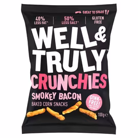 Well & Truly is a British healthier snacking brand launched in June 2016, offering delicious alternatives to traditional crisps and confectionery. Based in London, the brand was created to provide great-tasting snacks that don't compromise on health credentials. Their flagship product line - Crunchies - are baked corn snacks containing 40% less fat than average crisps. Made with all-natural ingredients and no added sugar, these gluten-free, vegetarian-friendly snacks come in under 150 calories per serving. Popular flavours include Really Cheesy, Smokey Paprika, Banging BBQ, Sour Cream & Onion, Punchy Pickle, and Sea Salt & Cider Vinegar. Well & Truly has expanded beyond savoury snacks into ethical chocolate, offering oat milk chocolate bars made with 43% single origin cocoa. These vegan-friendly chocolates are ethically and fairly traded, including seasonal options like the Cinnamon Christmas Bar. Originally positioned in free-from aisles, Well & Truly has grown to be stocked across major UK supermarkets including Tesco and Ocado, as well as Amazon. Use Grocefully to compare prices across retailers for healthier snacking options that taste as good as they make you feel.