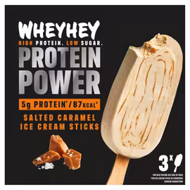 Wheyhey is a British brand specialising in high-protein, low-sugar ice cream and dairy products. Using whey from milk to boost protein content naturally, Wheyhey has pioneered guilt-free frozen treats for fitness enthusiasts and health-conscious consumers across the UK. The brand offers protein ice cream in 500ml tubs and convenient ice cream sticks (3-pack format with 5g protein and just 87 kcal per stick), alongside their expanding range of high-protein yogurts. Flavours include Salted Caramel and Mint Chocolate among others. Wheyhey products are available at major UK supermarkets including Tesco and Iceland, with the brand continuing to expand its retail presence. They've also been available through Ocado and are stocked in health food stores, particularly across London and South East England. London-based Wheyhey proves that ice cream can be both indulgent and nutritious. Grocefully helps you compare Wheyhey prices across UK supermarkets to find the best deals on protein ice cream and yogurts.