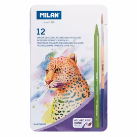 MILAN Metal box 12 woodless watersoluble colour pencils + brush
