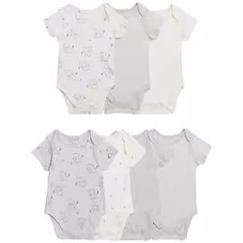 M&S 7pk Lion Bodysuits, Newborn-3 Y, Grey Mix