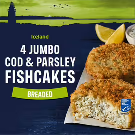 Iceland 4 Jumbo Cod & Parsley Fishcakes 480g