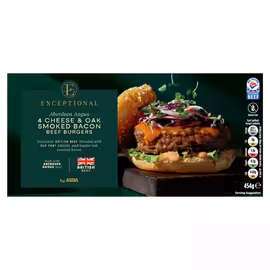 Exceptional by ASDA 4 Aberdeen Angus Cheese & Oak Smoked Bacon Beef Burgers 454g