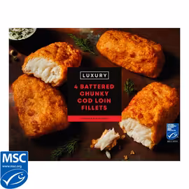 Iceland Luxury 4 Battered Chunky Cod Loin Fillets 500g