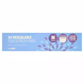 ASDA 20 Resealable Dual Track Seal Food & Freezer Bags Medium