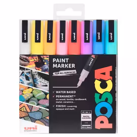 Uni Posca 8 Paint Marker Pastel Colours PC-3M Fine 0.9-1.3mm
