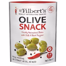 Mr Filberts Olive Snacks Green Olives with Chilli & Black Pepper