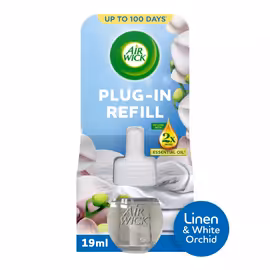 Air Wick Linen & White Orchid Plug-in Single Refill 19ml. Lasts up to 100 days. Air Freshener.