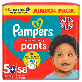 Pampers Baby-Dry Nappy Pants Size 5+, 58 Nappies,12kg-17kg
