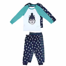 M&S 2pk Cotton Wolf Pyjama Set, 4-5 Y, Blue Mix