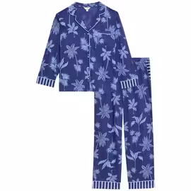 M&S Womens Cotton Rich Leaf Print Pyjama Set, Blue, S-XL