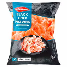Crown Farms Cooked and Peeled Black Tiger King Prawns