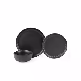 George Home Black Ribbed Dinner Set 12 Piece