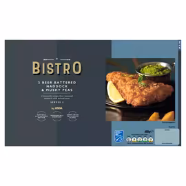 Bistro by ASDA 2 Beer Battered Haddock & Mushy Peas 480g