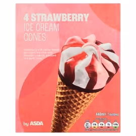 ASDA 4 Strawberry Ice Cream Cones 4x110ml