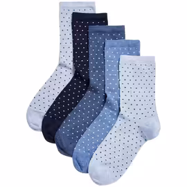 M&S Womens Seamles Toes Ankle High Socks, 5 Pack, Blue