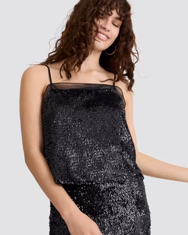 The F&F Edit Organza Trim Sequin Embellished Co-ord Camisole in Black