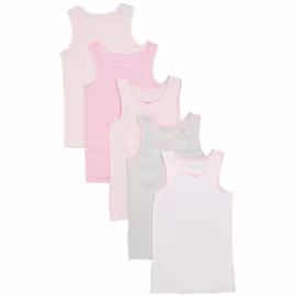 M&S Girls Pure Cotton Heart & Plain Vests, 5 Pack, 2-12 Years, Pink