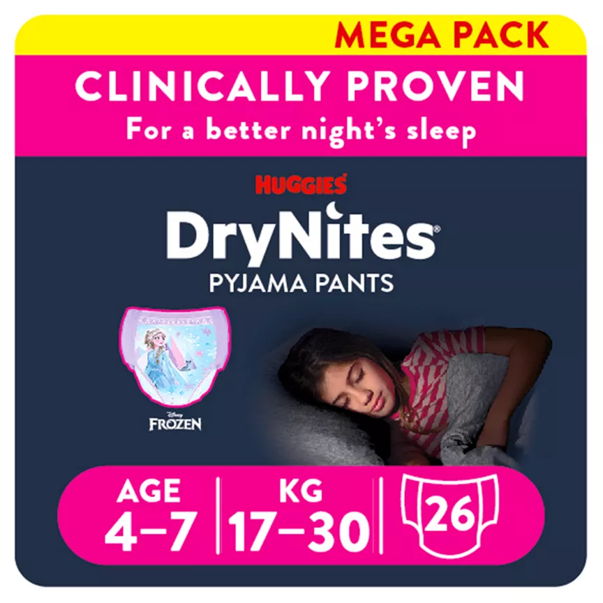 Huggies DryNites Pyjama Pants Girl 4-7 Years (17-30kg) Mega Pack, 26 Pants