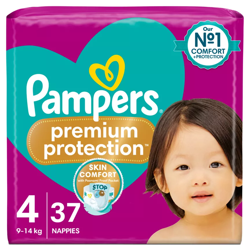 Pampers Premium Protection Size 4, 37 Nappies, 9kg - 14kg, Essential Pack