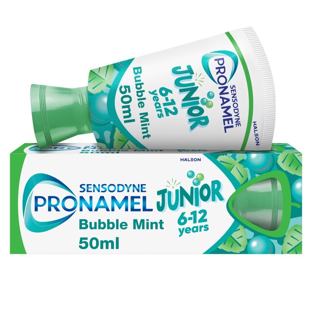 Did you know that new permanent teeth are 50% more vulnerable to damage and take up to 3 years to fully strengthen versus adults' teeth? That's why it's so important to take care of your little one's teeth. Sensodyne Pronamel Junior 6-12 Years is a Bubble Mint flavoured toothpaste is specially formulated for kids aged 6-12. It actively protects precious enamel and provides 24-hour cavity protection** for strong, healthy teeth. ** Follow a healthy diet and brush twice daily. Level of protection may decrease between brushing. Specially formulated with an optimised fluoride technology, this toothpaste contains 1450ppm fluoride, 100% natural flavours and a bubble mint flavour. New Sensodyne Pronamel Junior 6-12 Years Toothpaste and Kids 3-5 Years Toothpaste have been specially designed with dentists to help protect children's teeth from acid wear. Our kids' toothpaste range contains 100% natural flavours, is vegan-friendly†† and has no SLS for child friendly foaming. Sensodyne Pronamel fluoride toothpastes for kids' are packaged in a recyclable tube, cap and carton. ††Does not contain any animal or animal derived products. 1. Strong enamel: is your child's first line of defence against cavities and erosion is their enamel, and using a toothpaste can further enhance their oral care routine. 2. 24-hour cavity protection**: Specially formulated with optimised fluoride technology, this kids' toothpaste provides 24-hour cavity protection against dietary and sugar acids**. **Follow a healthy diet and brush twice daily. Level of protection may decrease between brushing. 3. 2x stronger defence†: Fluoride toothpaste for kids that's specially designed to provide 2x stronger defence against dietary acids†. †Enamel protection from sugar acids vs your mouth's natural defences. 4. Protecting smiles: Sensodyne Pronamel Junior 6-12 Years Toothpaste protects your child's precious enamel for stronger and healthier teeth. 5. Developed with dentists: Sensodyne Pronamel Junior 6-12 Years toothpaste has been designed with dentists to help protect children's teeth from acid wear and actively protect precious enamel on milk and permanent teeth. 6. Made with 100% natural flavours: This Bubble Mint flavoured toothpaste for kids is vegan friendly††, free from sugar, SLS and comes in a recyclable cap, tube and carton. ††Does not contain any animal or animal derived products. Country of Origin Slovakia